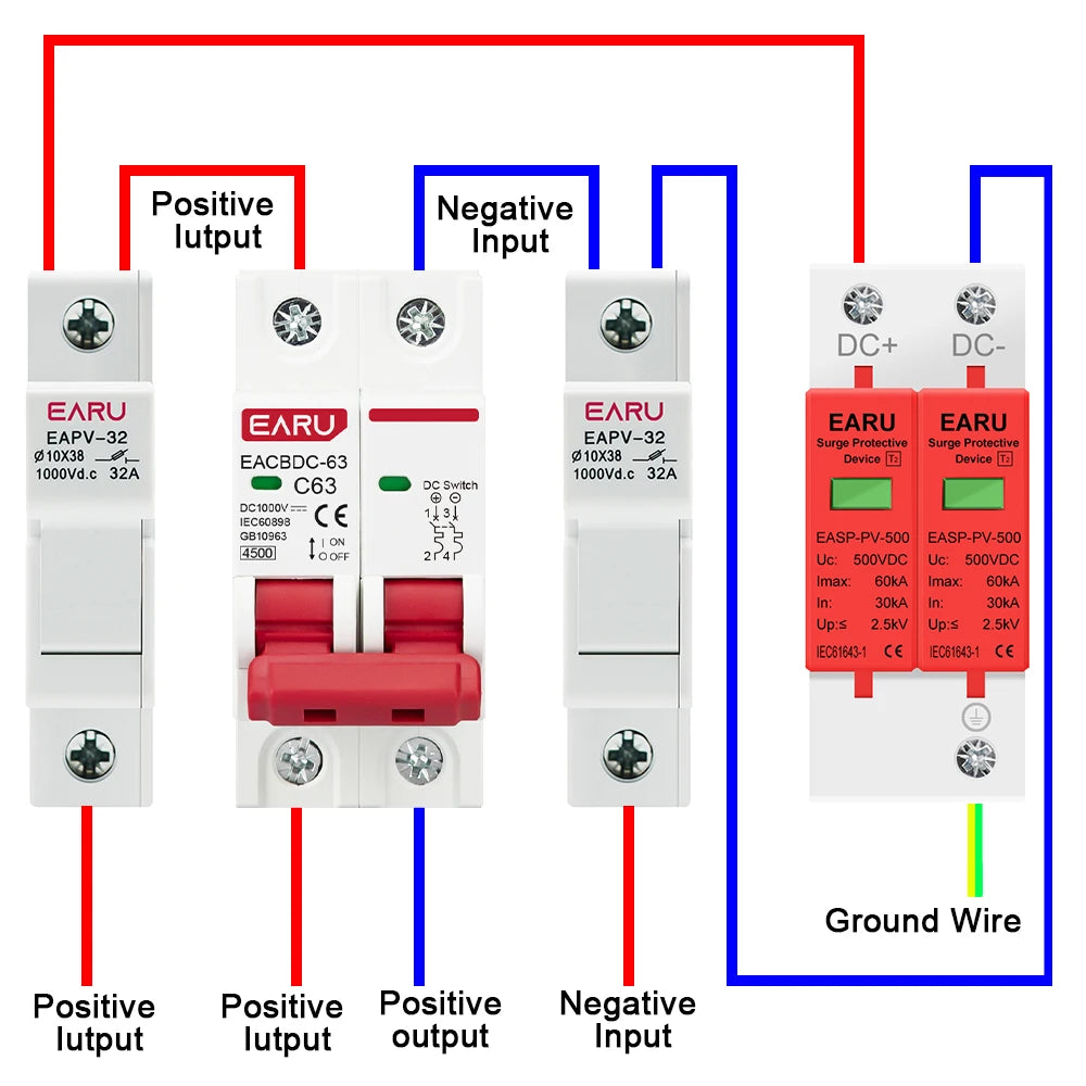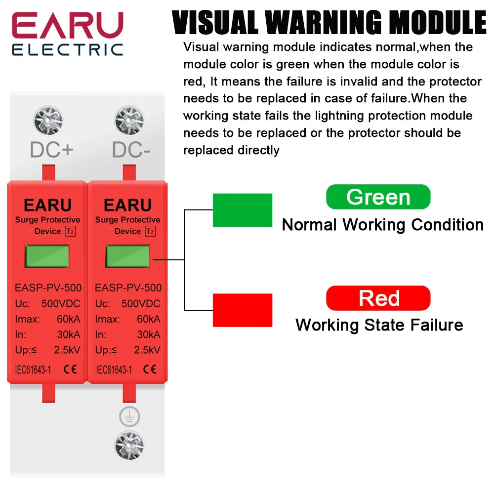 2P DC SPD Surge Protective Device 500V 800V 1000V 20KA 30KA 40KA 60KA Voltage Protector Solar PV Photovoltaic Lightning Arrester