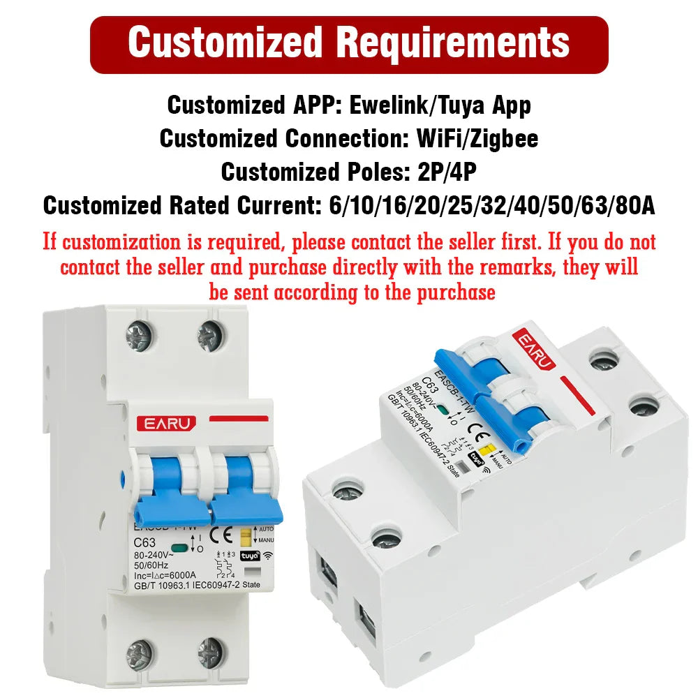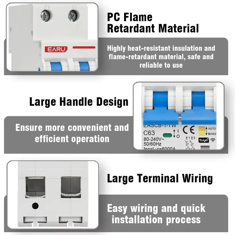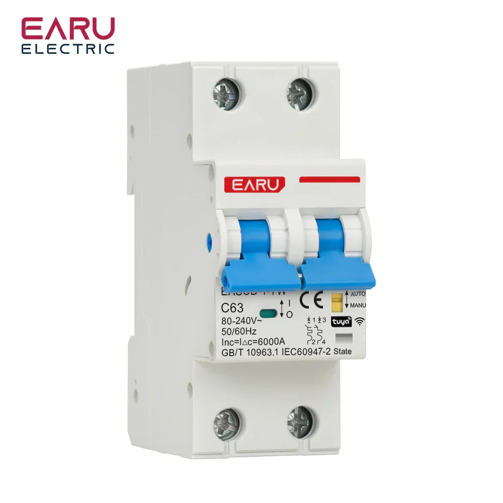 2P Tuya WiFi Smart Circuit Breaker MCB Timer Relay Switch Remote Control AC 63A 16A Power-off Memory Alexa Google Home Assistant