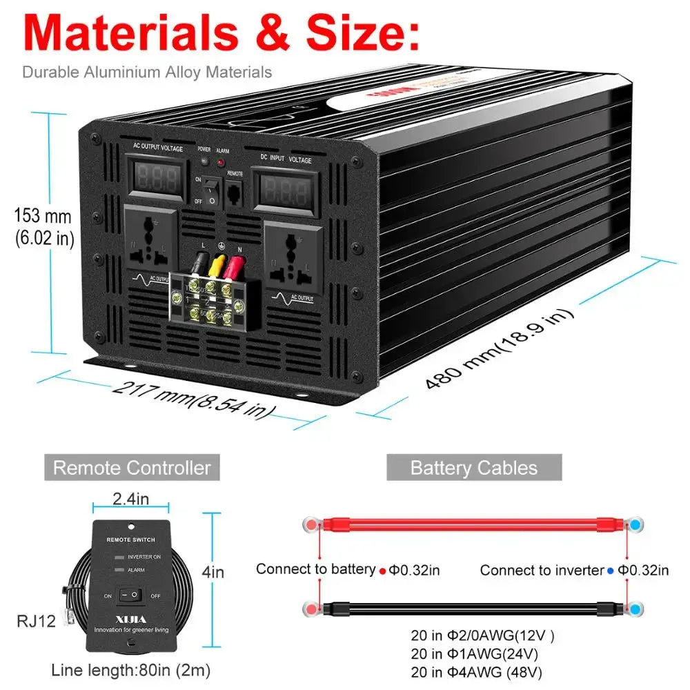 Upgrade your system with our high-performance 5000W (remote control) pure sine wave solar power inverter DC 12V 24V 48V to AC 110V 220V digital display. Built for reliability, efficiency and seamless integration with modern setups.