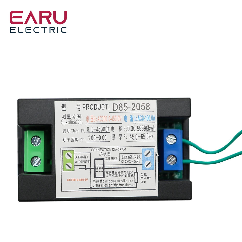 This digital LCD AC panel meter is the perfect household solution for monitoring voltage, current, frequency, and power usage in a single-phase system. With intelligent features and a clear display, you can easily stay informed and make informed decisions about your energy usage.