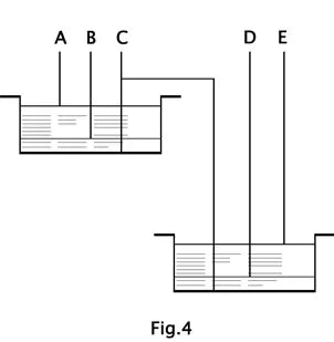 E-limit pond level control for the next point, the water reached the point E are rising water level, water in contact with the probe, the water level controller automatically open the pump, pond drainage; Without drainage, the E point is not connected ;