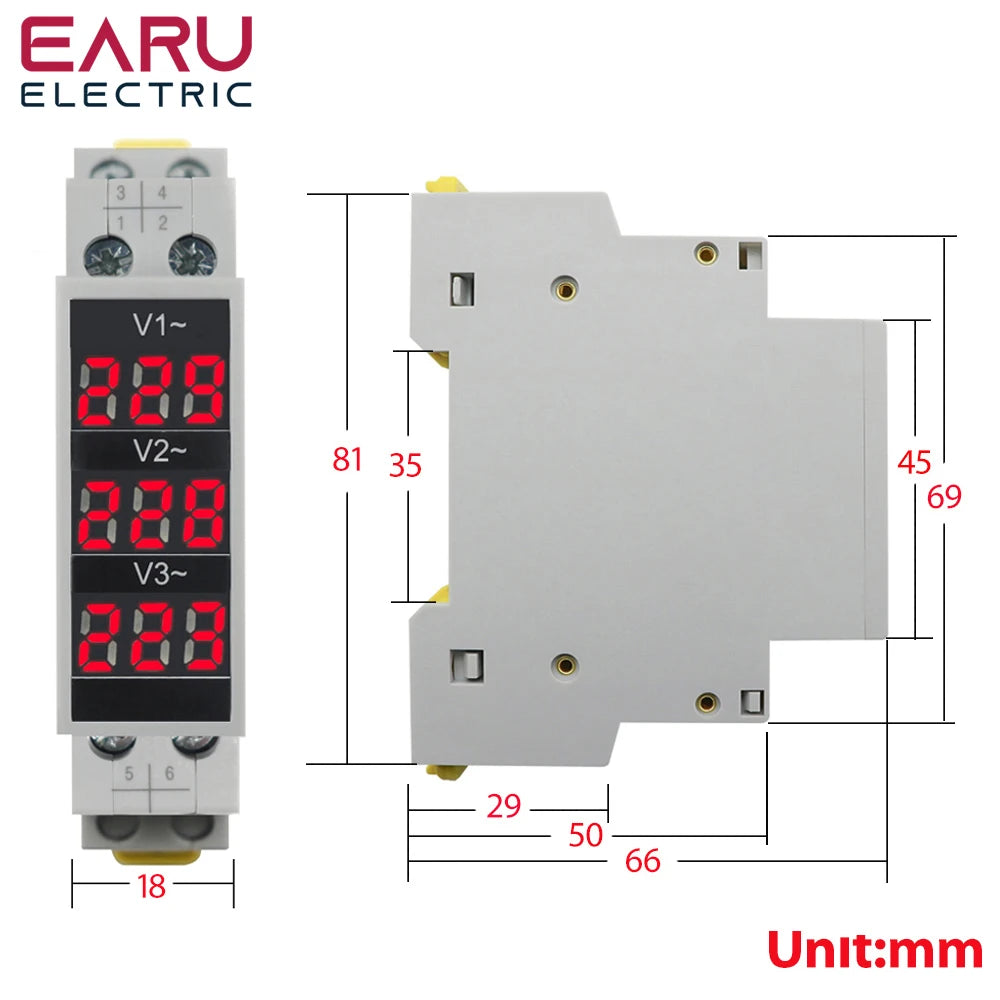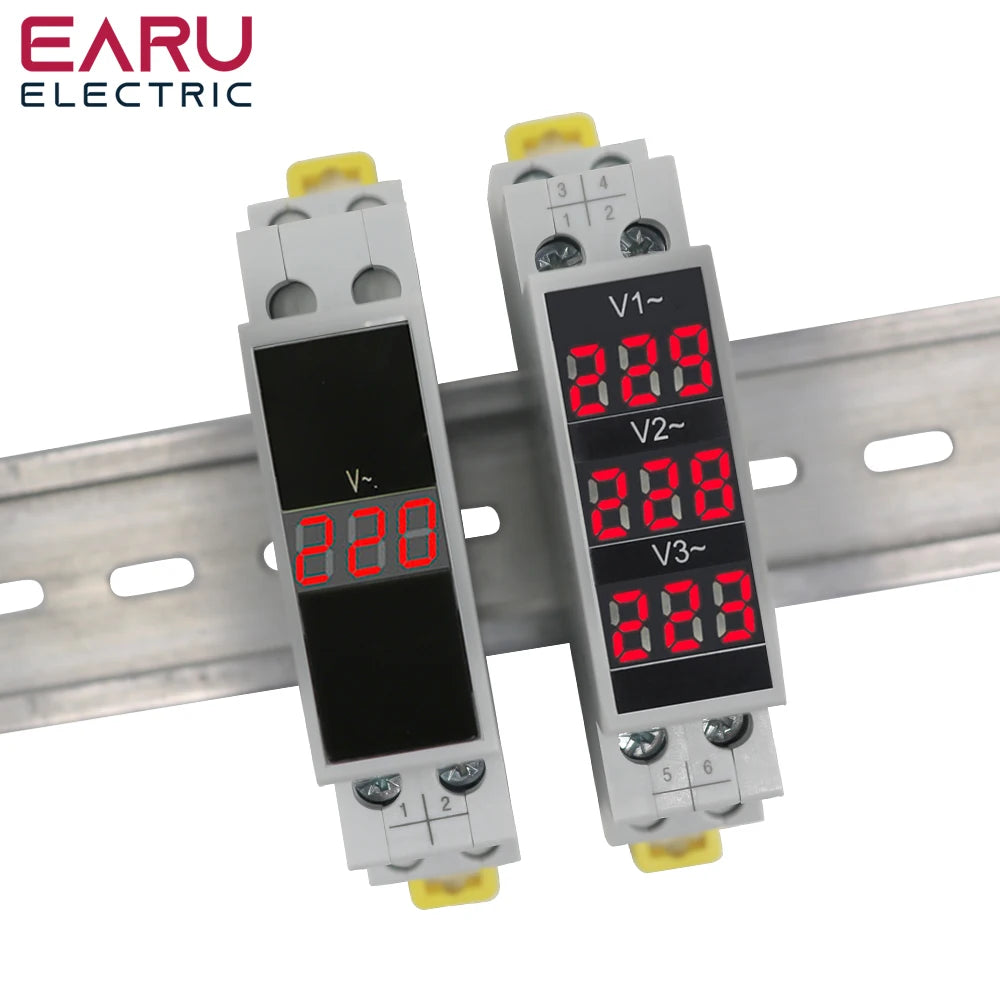 ⚡ Din Rail 18mm Voltage Meter AC 80-500V 220V 380V Single Three Phase Modular Voltmeter Indicator LED Digital Display Detector
