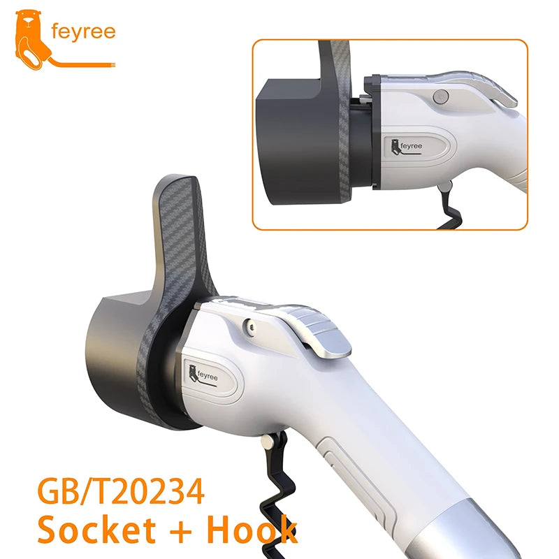 The feyree EV Charger GB/T Type Holder is the perfect solution for organizing your electric car charging cable. It features a wall mount design, making it convenient and easily accessible. Say goodbye to tangled cords and hello to a neat and organized charging station. Made specifically for electric cars, this charger holder ensures compatibility and efficient charging. Keep your space tidy and your car charged with the feyree EV Charger GB/T Type Holder.