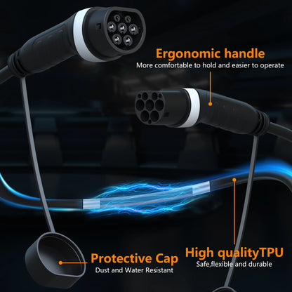 This feyree EV Charger Type2 to Type2 Charging Cable is capable of charging at 32A, 7KW on 1Phase and 16A, 3.5KW on 3Phase, making it suitable for all electric vehicles. With a variety of charging options, it provides fast and efficient charging, perfect for a busy lifestyle.