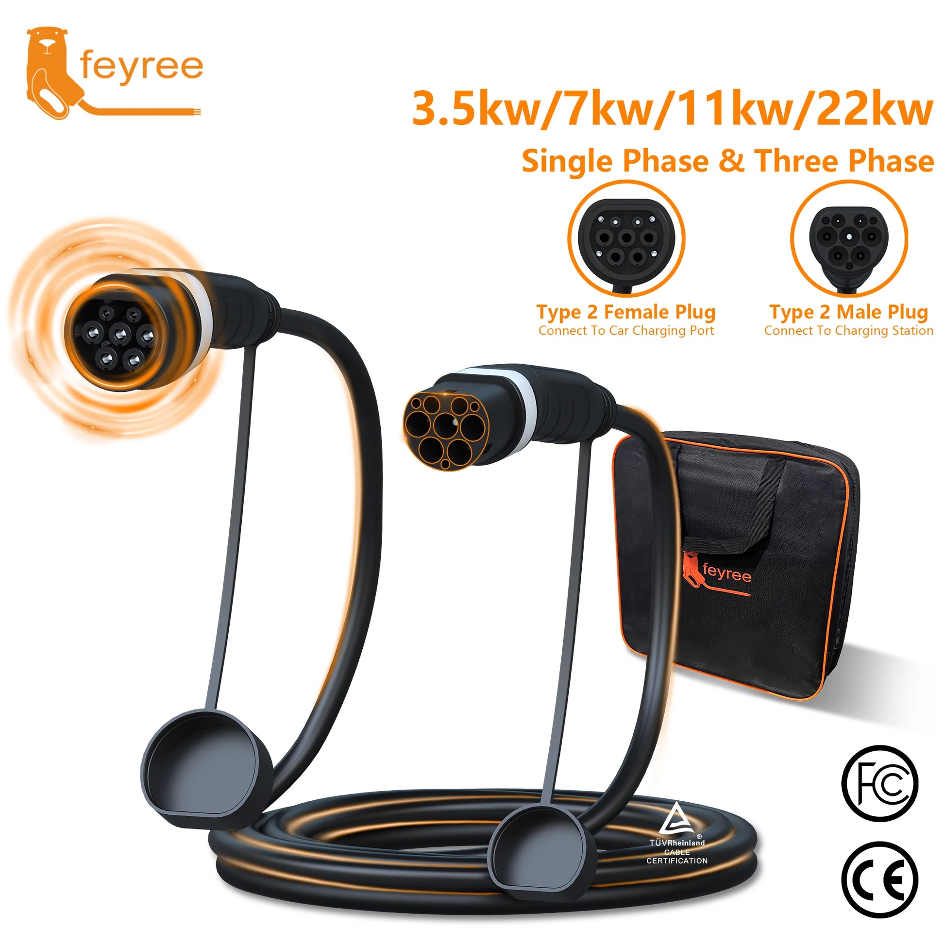 ⚡ feyree EV Charger Type2 to Type2 Charging Cable 32A 7KW 1Phase 16A 3.5KW 11KW 22KW 3Phase Charger Station for Electric Vehicle