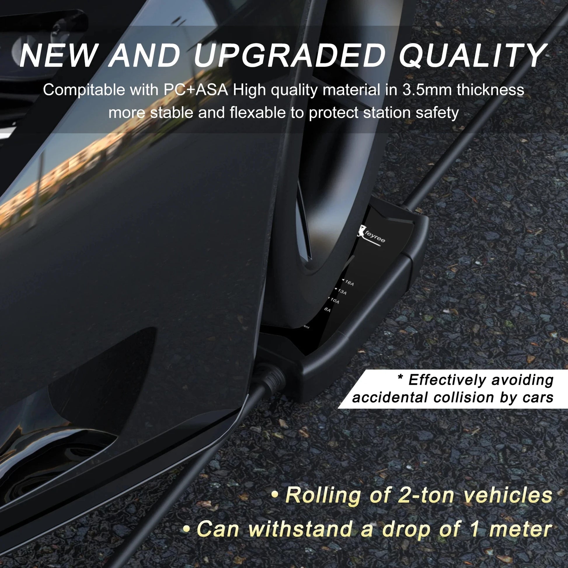 Well-designed: The special socket effectively prevents dust from entering the EV charger interface. 3.5M cable is sturdy and durable, suitable for use in various parking lots or family garages. It can be hung on the holder after use, which is flexible and convenient. When fully charged, the device will automatically power off.