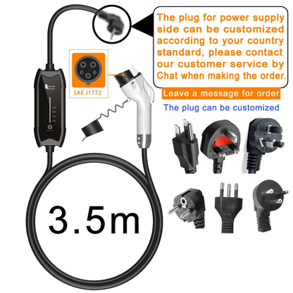 feyree EV Portable Charger Type2 / GB/T Plug 16A Single Phase 3.5KW Type1 3.5m Wallbox Charging Station for Electric Vehicle
