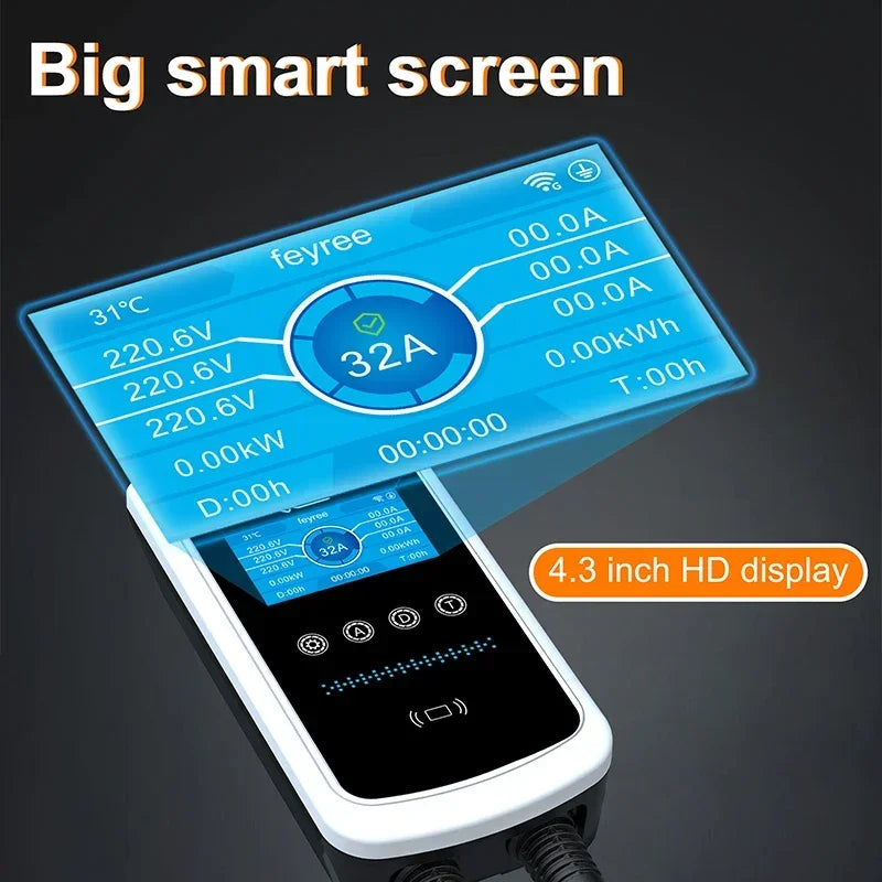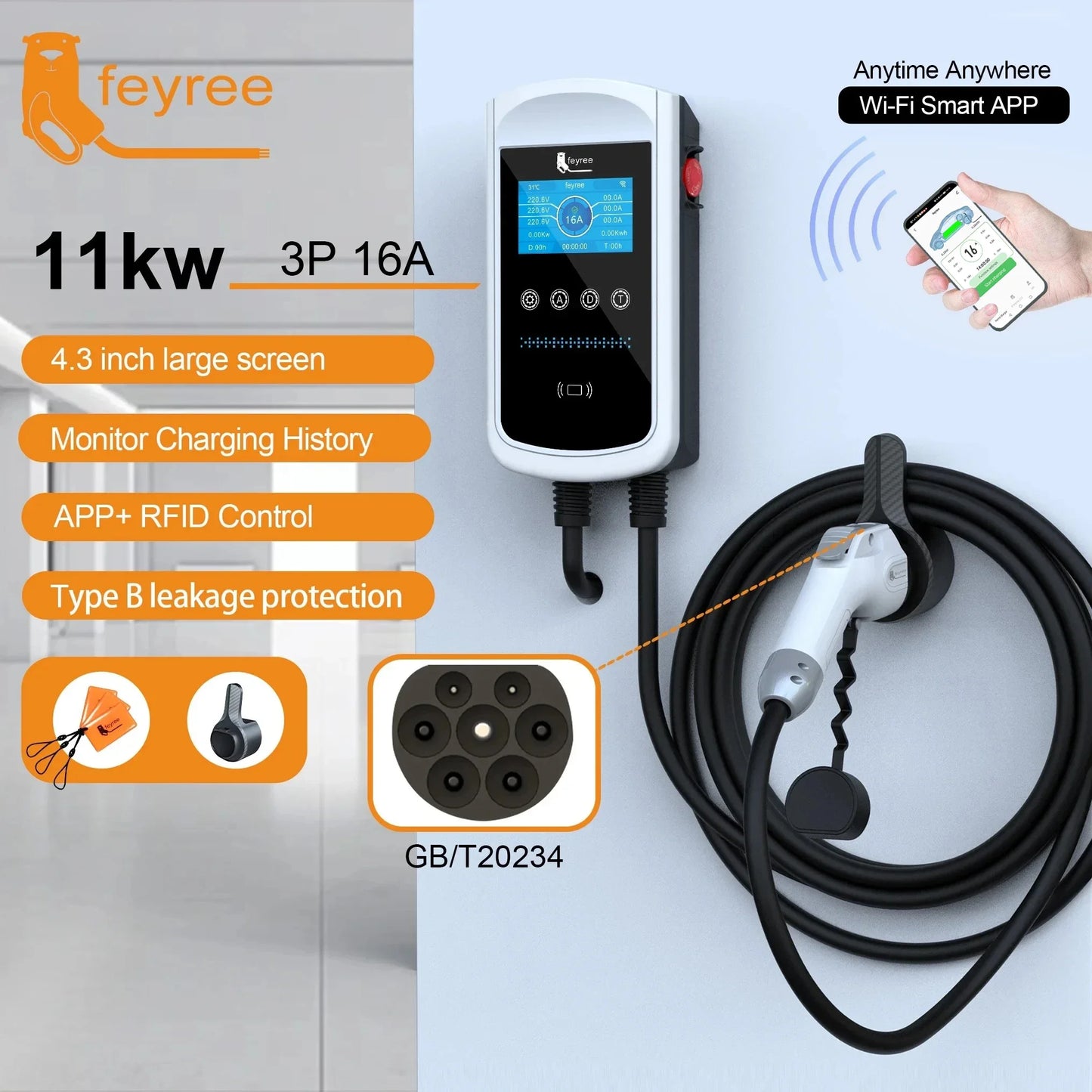 Upgrade your system with our high-performance feyree GB/T Socket EV Charger 7.6kw 32A Wallbox 4.3 inch Big Screen APP Charge History Record 11kw 22kw 3 Phase Charging Station. Built for reliability, efficiency and seamless integration with modern setups.