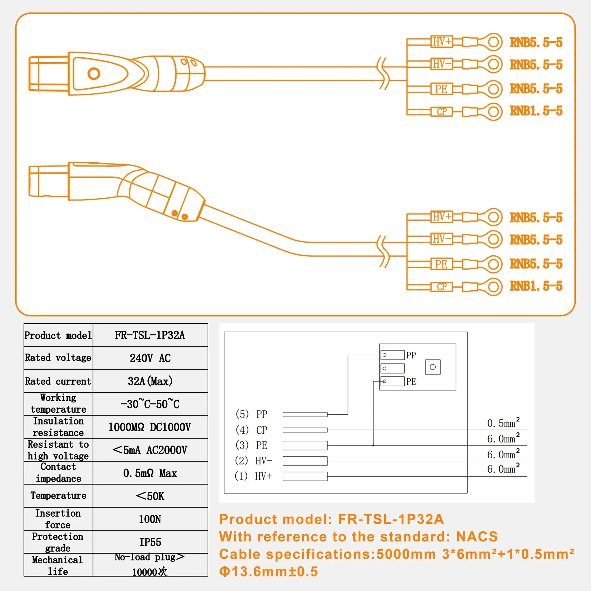 ⚡ feyree TS-NACS Cord Tesla Plug for Electric Car Side EV Charger 16A 32A 40A 50A Current for Electric Car Charger Model 3 X Y S