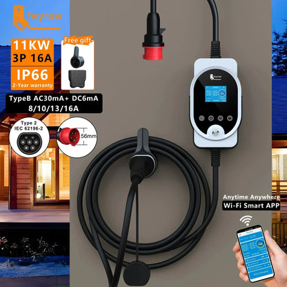 feyree Type2 11KW EVSE Wallbox EV Portable Charger 16A 3Phase Wi-Fi Smart APP Control Charging Station for Electric Car Charger