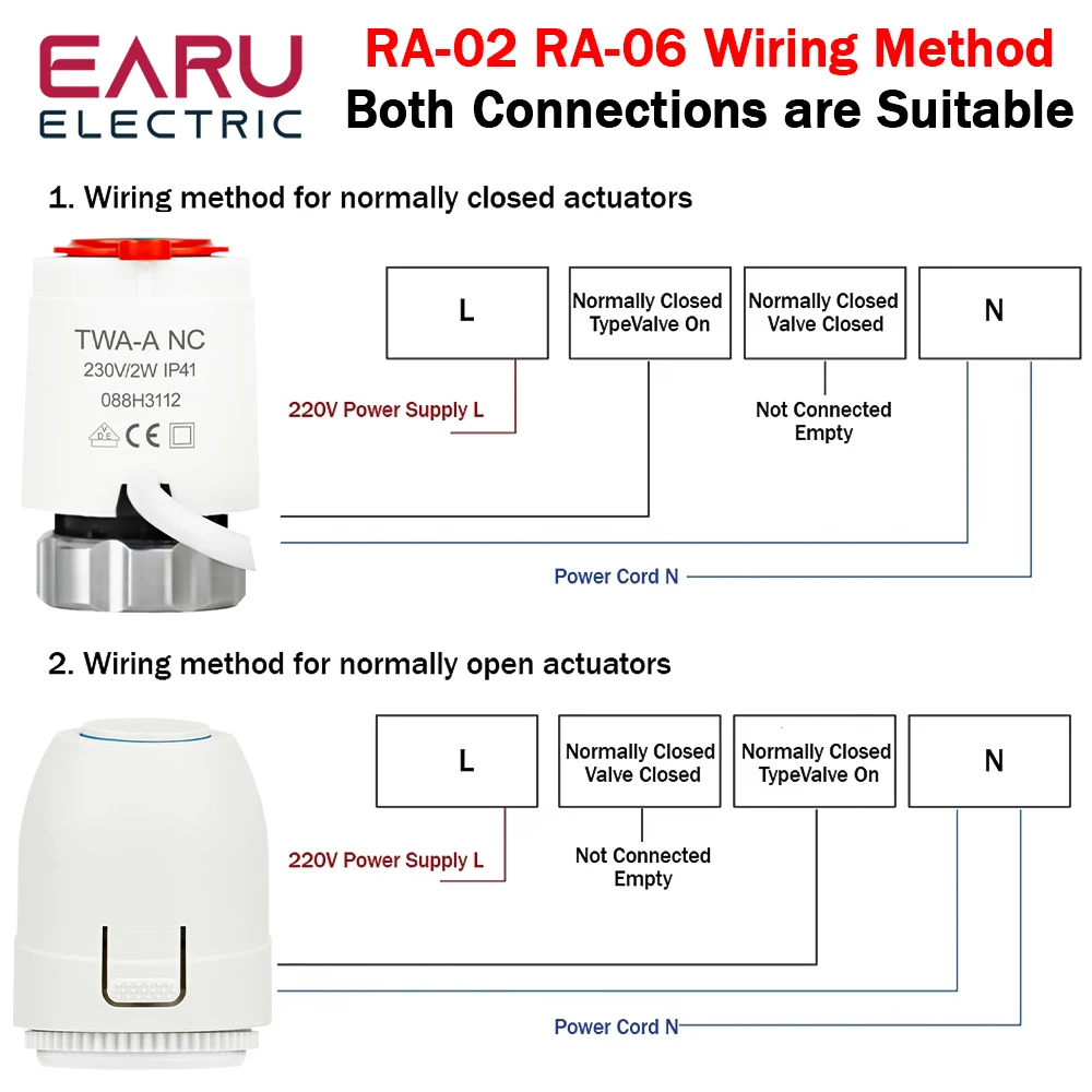 Floor Heating Valve NC AC 230V M30*1.5mm Electric Thermal Actuator Manifold For Underfloor Heating TRV Thermostatic Radiator