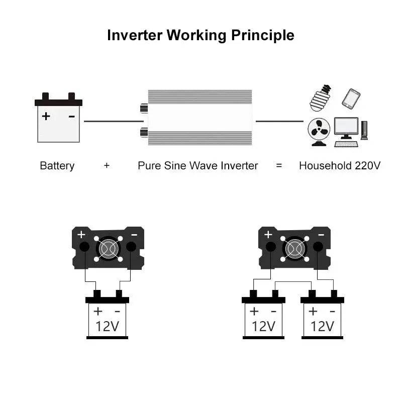 ⚡ Pure Sine Wave Inverter 2000/3000/4000 W Power DC 12/24V To AC 220V Voltage 50/60HZWith LED
