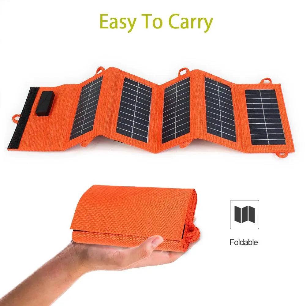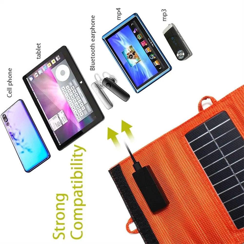 Designed for hiking, camping, climbing, and other outdoor sports, 5W portable solar charger is slim and lightweight, with a folded size of 5.7*3.5*1.57 inches and weighing 0.66 pounds. It is compatible with Apple, Samsung, Nexus, HTC, LG devices and more.