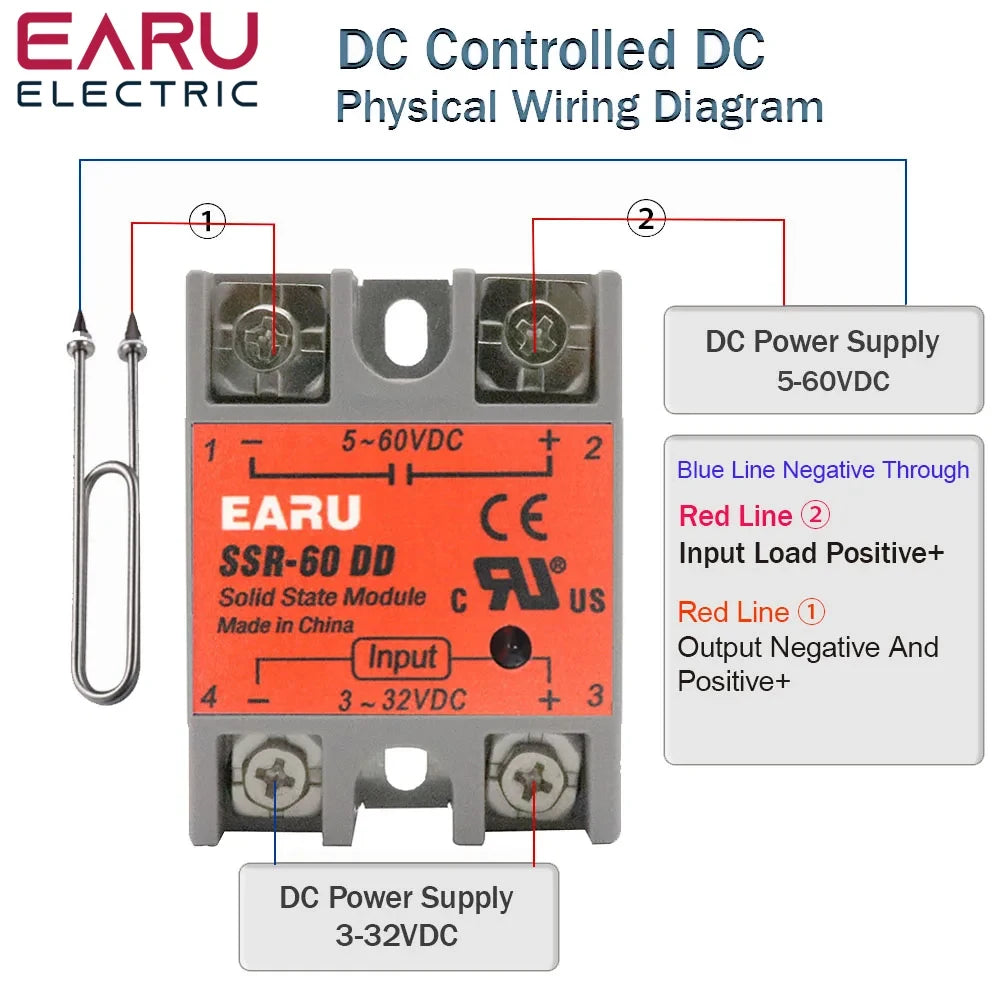 ⚡ SSR-25DD SSR-40DD SSR 10A 60A 80A 100A Single Phase Solid State Relay Module DC 3-32V Input DC 5-60V Output Voltage Transformer