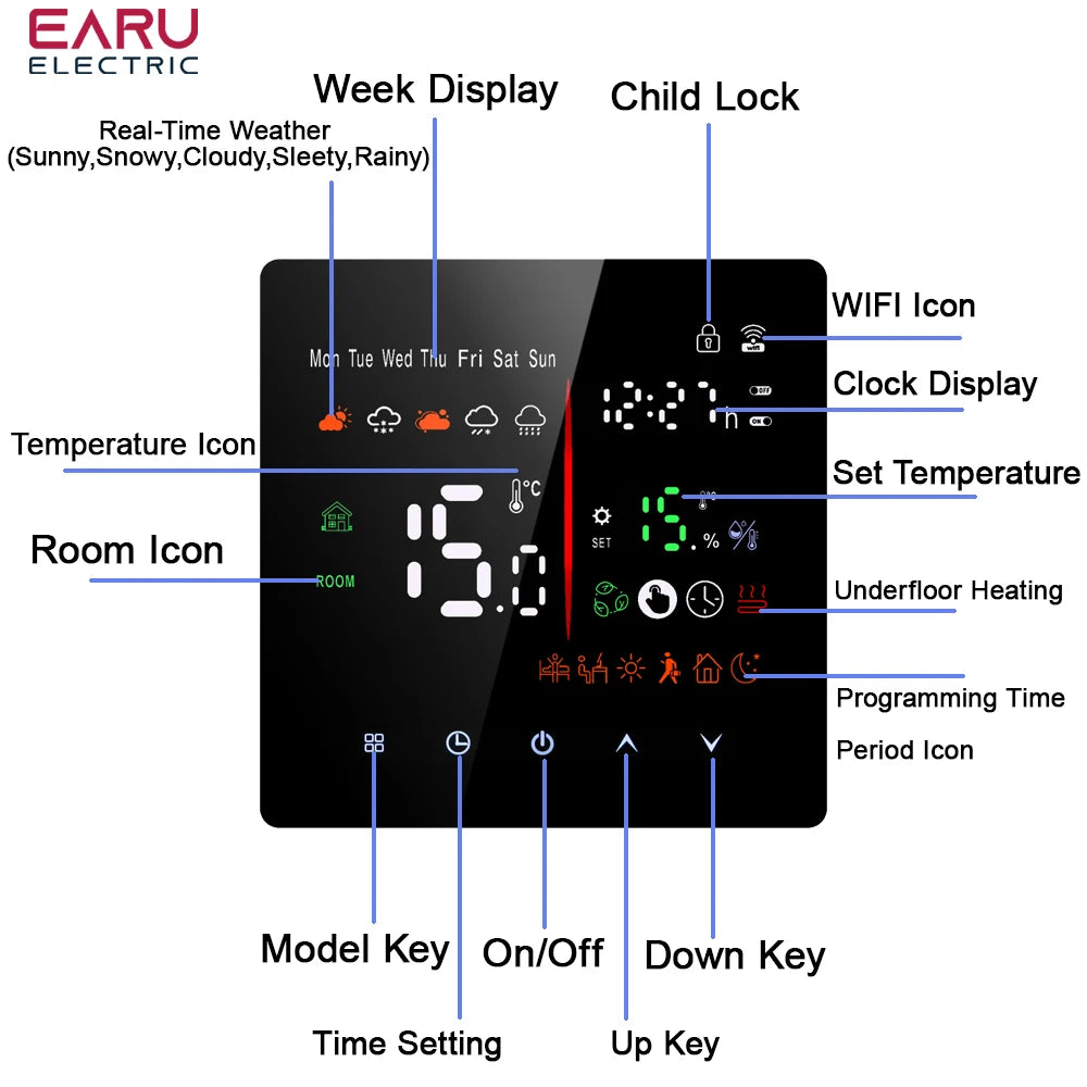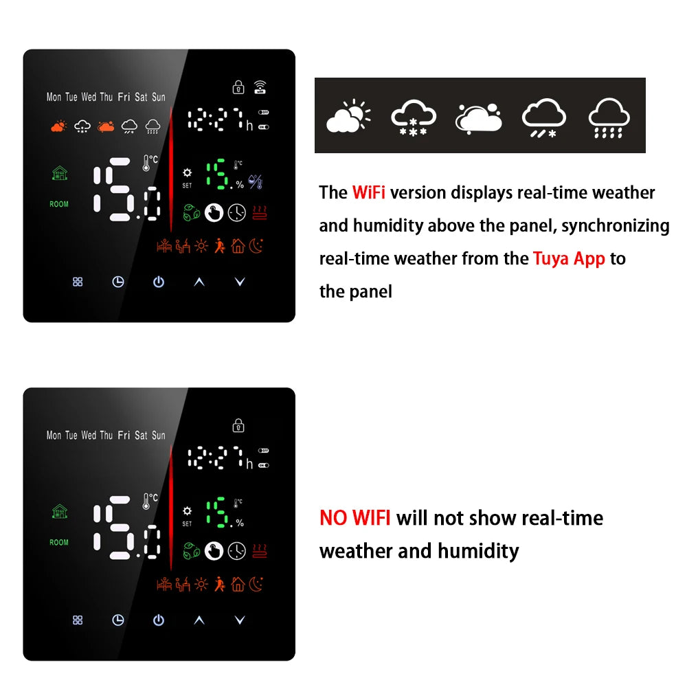 Upgrade your system with our high-performance Tuya WiFi Smart Thermostat Electric Floor Heating TRV Water Gas Boiler Temperature Voice Remote Controller for Google Home Alexa. Built for reliability, efficiency and seamless integration with modern setups.