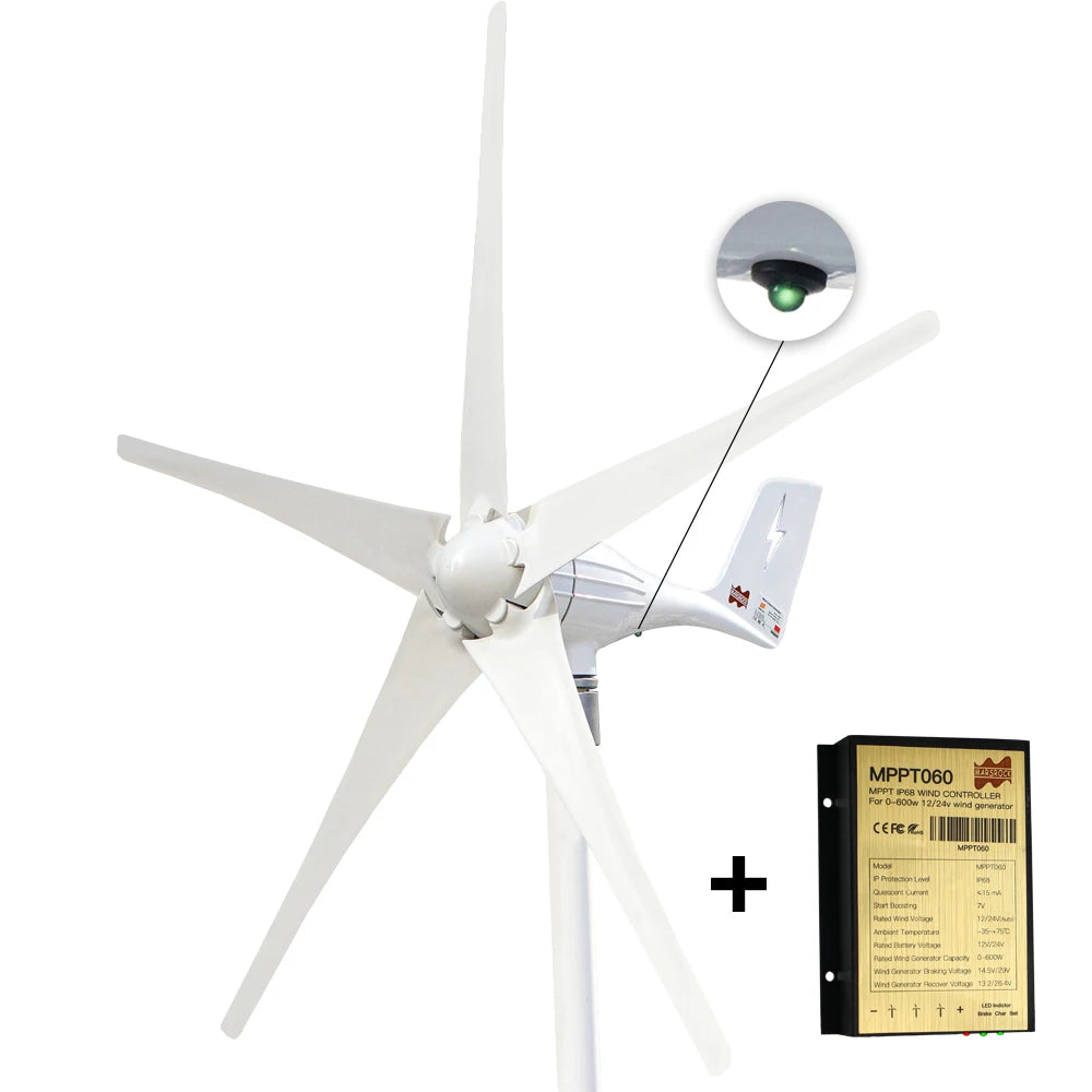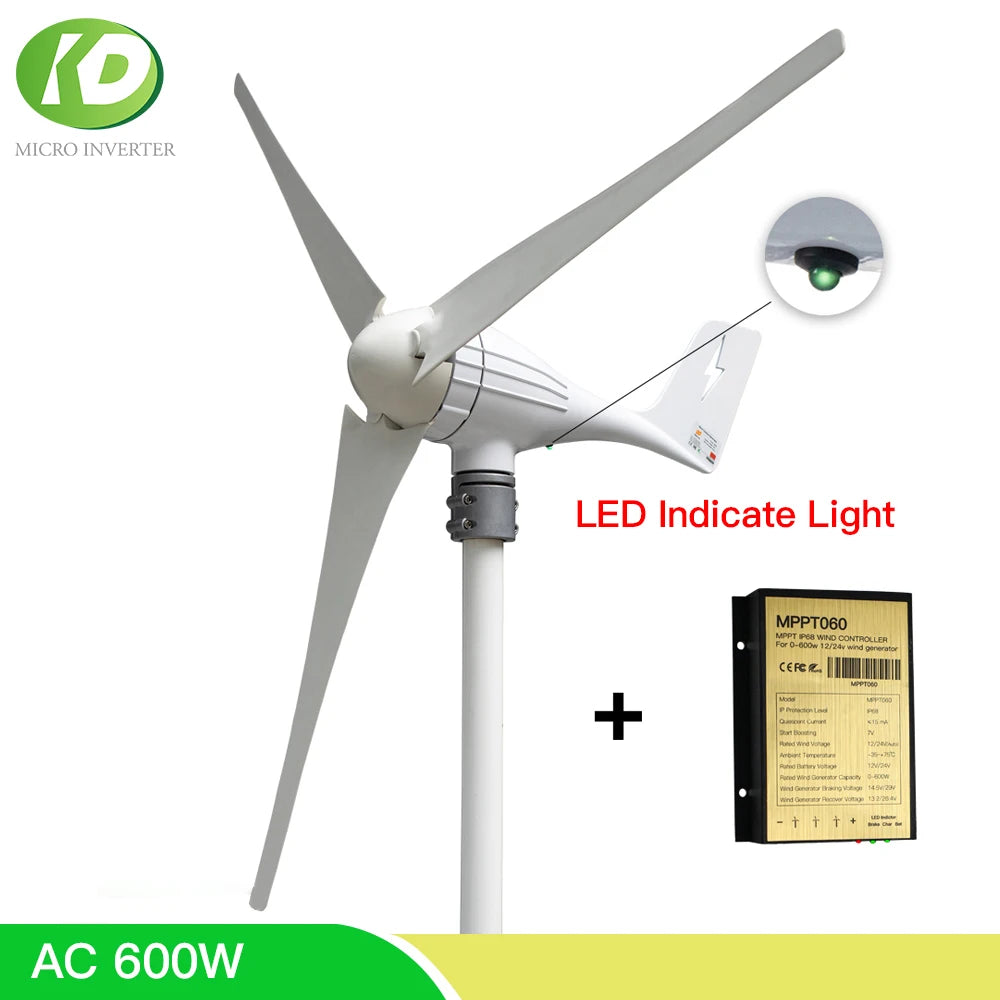 Wind Turbine High Efficient 600W Generator 12V 24V Home Small Windmill LED Indicate Light Free MPPT Charge Controller