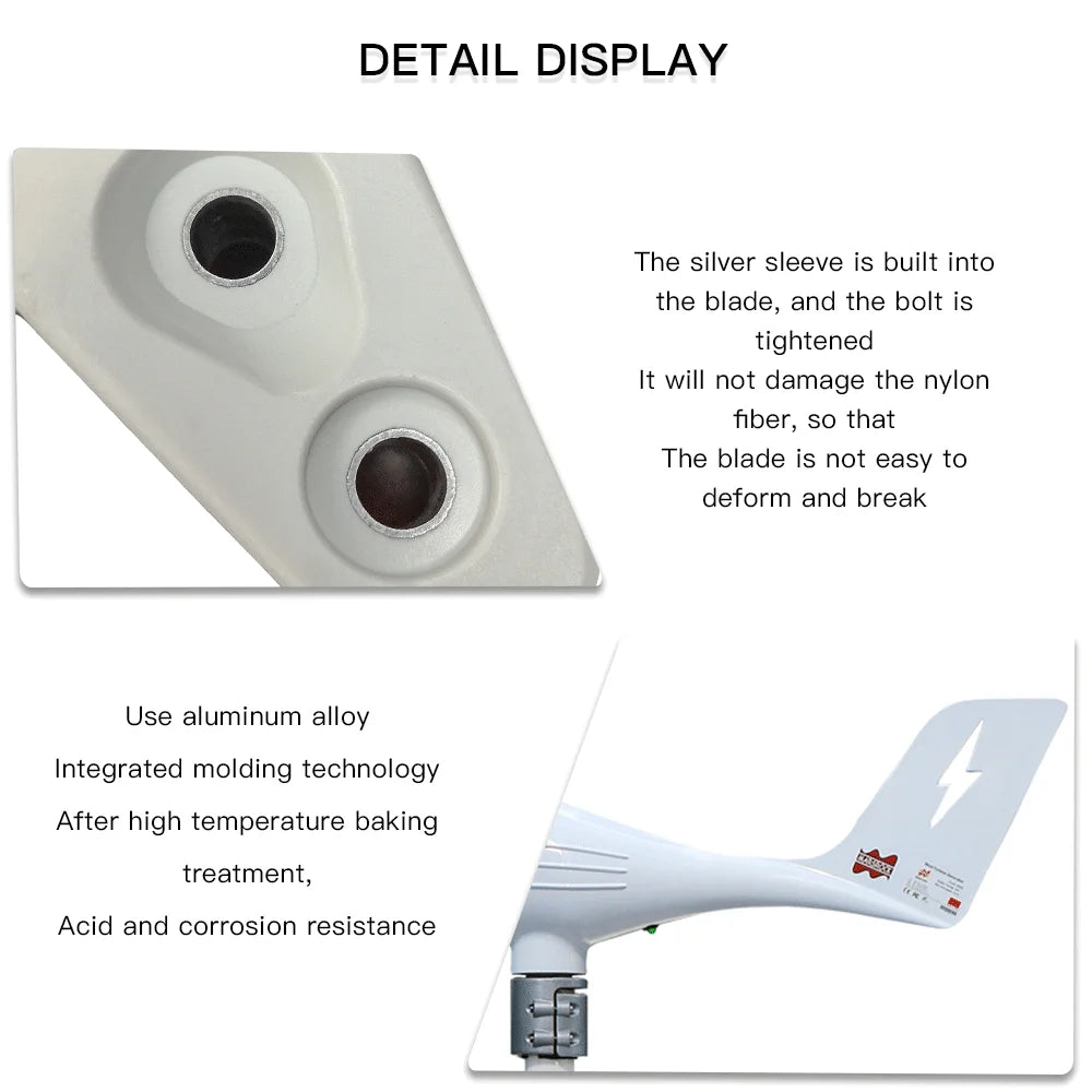 The built-in charging LED indicator can instantly sense the magnetic field current generated by the rotation of the generator shaft. When the wind turbine starts to rotate, the green charging indicator light keeps flashing. When the current is continuously increasing, there can be a significant current output, The green light will get brighter and brighter. Through the change of the charging indicator, you can know whether the generator can work correctly and the strength of the current output. Especially in the dark, the charging indicator can also dress up your home like a firefly, which is visible from a distance.